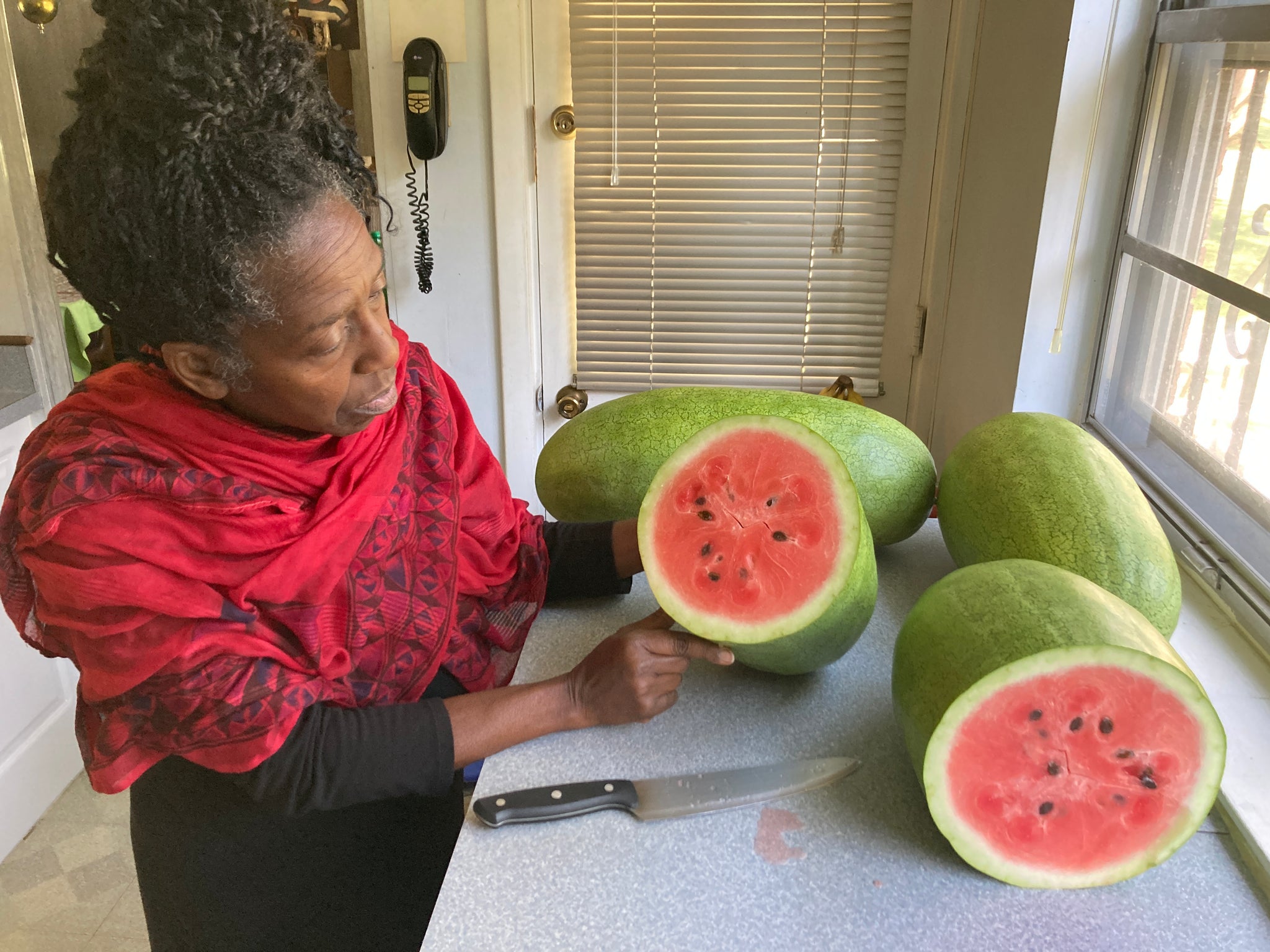 While his great grandfather moved to Philadelphia, Aundrae's grandparents would make yearly trips back down Virgina. His grandfather's car trunk would be loaded full of Charleston Gray watermelons which made the front of his big black sedan rise high in the front until he delivered all the watermelons to family and friends in the Philadelphia area. Aundrae adds "my wife and I fondly grow the Charleston Gray watermelon, which evokes joyful sunny memories of summertime past."